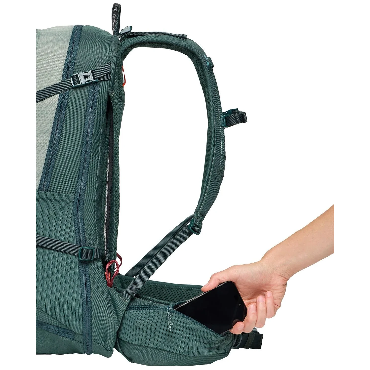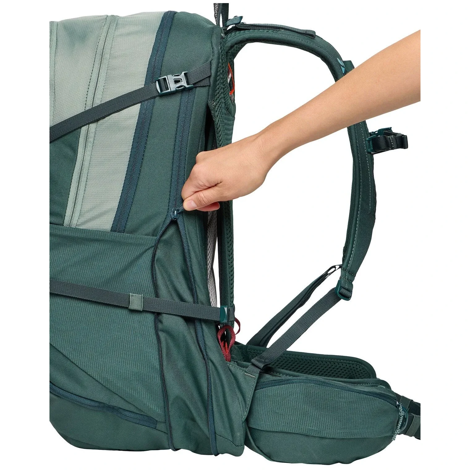 Er schafft einen zusätzlichen Stützpunkt und hilft, das Lastgewicht von den Schultern auf das Becken zu verteilen. Ein hochwertiger und gut eingestellter Hüftgurt trägt mehr als 60 % des Gewichts des Rucksacks.
