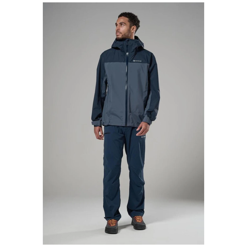 Die Basis bildet das Material Pertex® Shield 2,5 L, das ein recyceltes 40D Ripstop-Gewebe mit einer wasser- und winddichten Membran kombiniert. Die innere 20D Trikot-Fütterung ist angenehm auf der Haut und erhöht den Tragekomfort. Die Konstruktion ist auf geringes Gewicht und Funktionalität ausgelegt, wobei wenige Nähte die Haltbarkeit erhöhen und gleichzeitig die Atmungsaktivität bei aktiver Bewegung unterstützen.