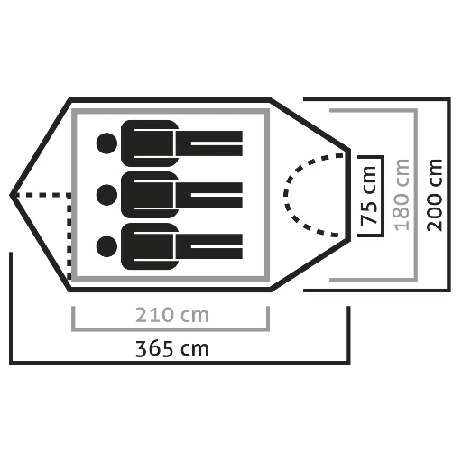 Es wird vor allem bei Familienzelten verwendet, bei denen der Schwerpunkt auf nutzbarem Raum und Komfort liegt. Mehr Schlafzimmer bedeuten mehr Privatsphäre und mehr Vielfalt im Innenraum.